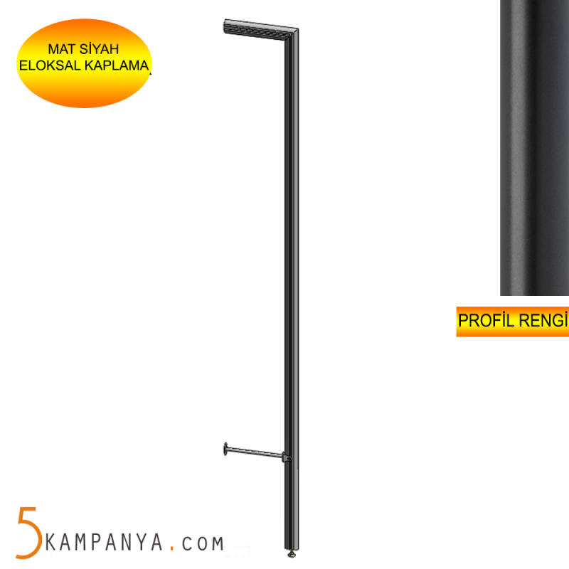Giyinme Odası F Tipi Duvar Dikmesi, Mat Siyah Eloksal Özellikleri